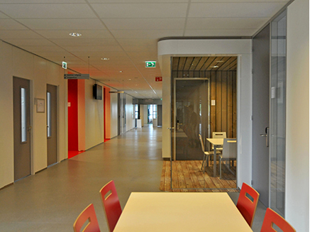 OMSCHRIJVING Het Regio College staat voor vernieuwing en inspiratie voor deelnemers enmedewerkers en biedt een leeromgeving die de praktijk als richtlijnneemt.Het Regiocollege in Zaandam is verspreid over meerdere locaties Eén daarvan is afgestoten. De reorganisatie, die dit met zich mee bracht, werd gezien als een kans om het competentiegericht onderwijs vorm te geven. Na de transformatie van het gebouw aan de Cypressehout 95 heeft ook nummer 99 een onderwijsfunctie gekregen. Ook hier heeft TVDH Architecten samen met de gebruikers een realistische, verfrissende en inspirerende leeromgeving kunnen realiseren voor ondermeer de afdelingen: Techniek, Uiterlijke verzorging en Handel, Hospitality en Economie.